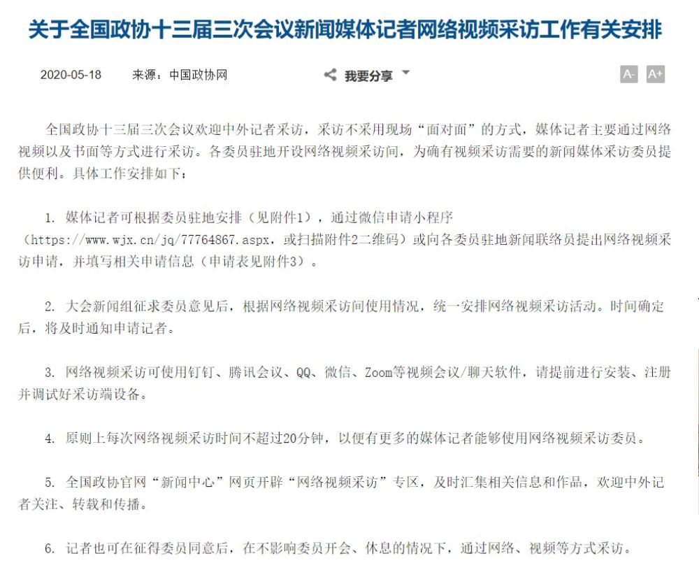 兩會開幕在即,5月18日,中國政協(xié)網(wǎng)發(fā)布了這樣一則通知: