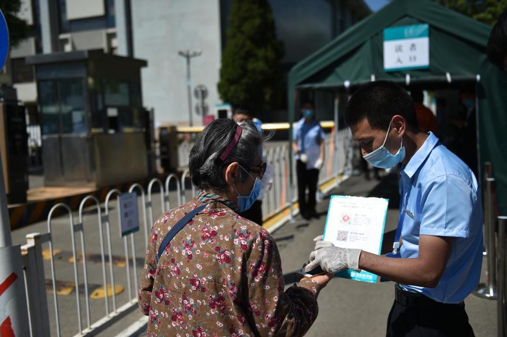 5月11日,在北京市海淀區(qū)的北京市十一學(xué)校龍樾實(shí)驗(yàn)中學(xué),初三年級學(xué)生進(jìn)入學(xué)校前掃描“健康碼”。新華社記者?任超?攝