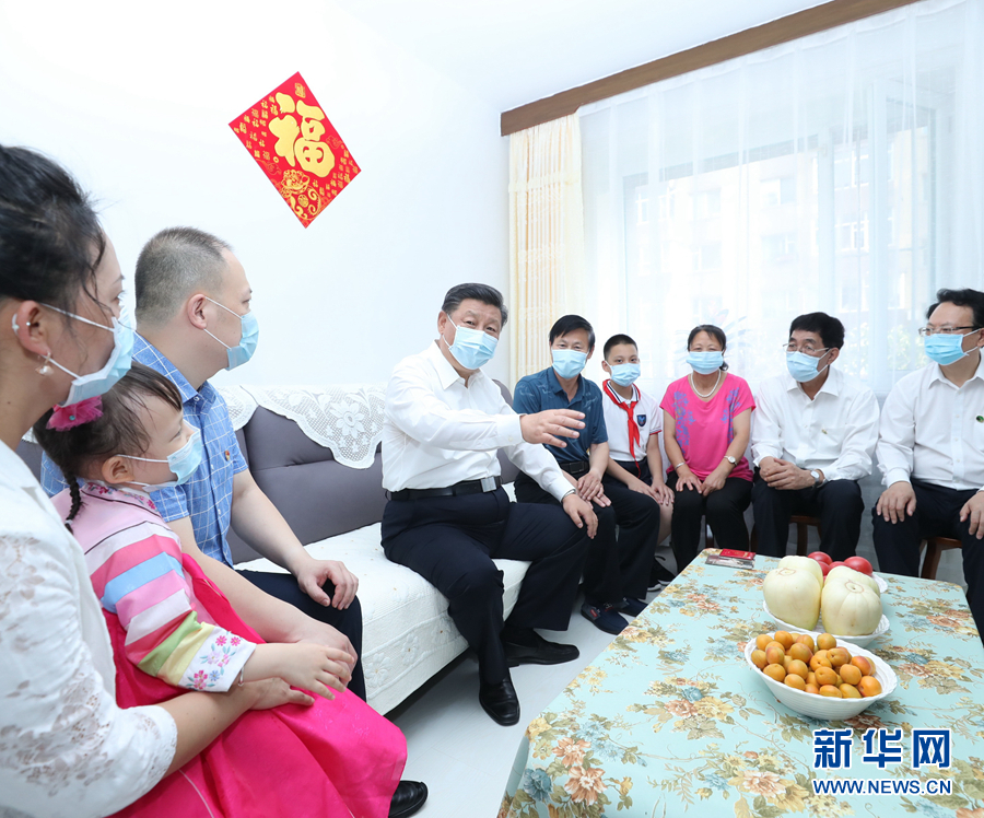 7月22日至24日,中共中央總書記、國家主席、中央軍委主席習(xí)近平在吉林省考察。這是7月23日下午,習(xí)近平在長春市寬城區(qū)團(tuán)山街道長山花園社區(qū),同居民趙興福一家嘮家常。 新華社記者 鞠鵬 攝