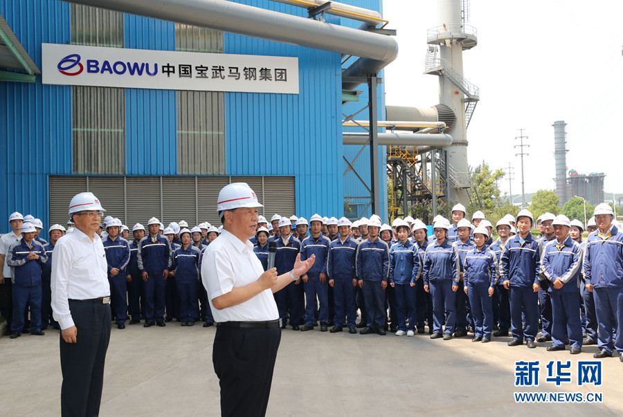 馬鞍山市因鋼而設(shè)、因鋼而興。習(xí)近平來(lái)到中國(guó)寶武馬鋼集團(tuán),了解企業(yè)生產(chǎn)經(jīng)營(yíng)情況,察看重點(diǎn)產(chǎn)品展示。隨后,習(xí)近平走進(jìn)優(yōu)質(zhì)合金棒材車(chē)間,察看加熱爐、初軋機(jī)、中軋機(jī)等運(yùn)行情況。車(chē)間外,企業(yè)勞動(dòng)模范、工人代表看到總書(shū)記來(lái)了,熱烈鼓掌。習(xí)近平親切地同大家打招呼。他指出,疫情發(fā)生以來(lái),馬鋼克服困難,率先復(fù)工復(fù)產(chǎn),上半年產(chǎn)量和營(yíng)收同比實(shí)現(xiàn)“雙升”。要抓住深化國(guó)有企業(yè)改革和推動(dòng)長(zhǎng)三角一體化發(fā)展的重大機(jī)遇,加強(qiáng)新材料新技術(shù)研發(fā),開(kāi)發(fā)生產(chǎn)更多技術(shù)含量高、附加值高的新產(chǎn)品,增強(qiáng)市場(chǎng)競(jìng)爭(zhēng)力。勞動(dòng)模范是共和國(guó)的功臣,要大力弘揚(yáng)勞模精神。