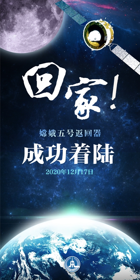 海報(bào):回家!嫦娥五號(hào)返回器成功著陸 新華社記者 孟麗靜 編制