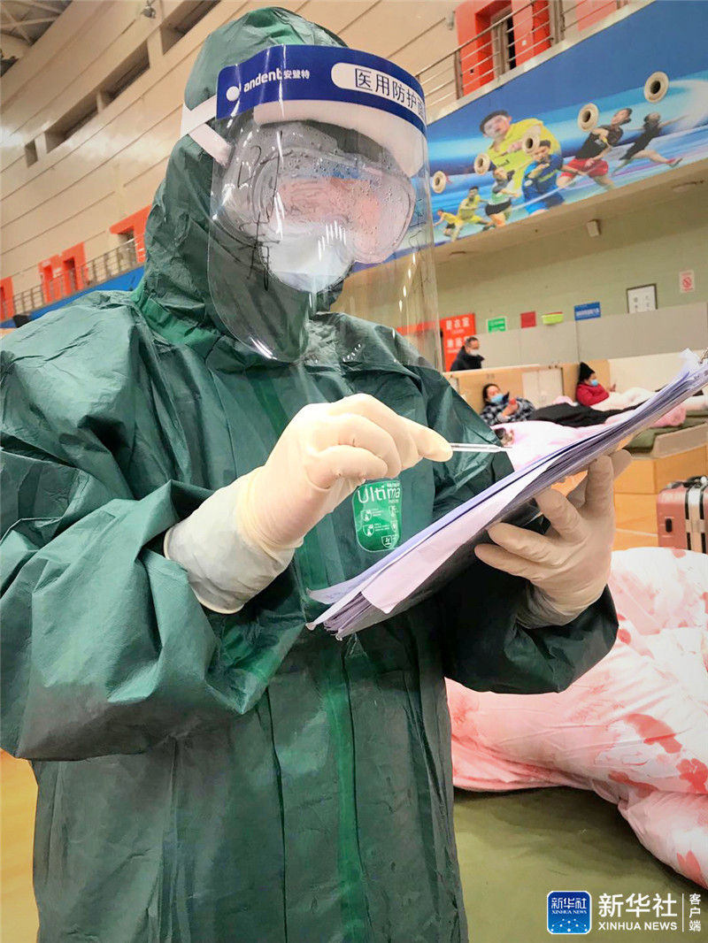 2月13日,葉青和同事們一起進(jìn)入武漢體育中心方艙醫(yī)院收治病人,當(dāng)天就收入院377名病人?!澳莻€(gè)場(chǎng)景對(duì)于我來(lái)說(shuō)一生都很震撼。當(dāng)天部分病人情緒也很糟糕,有些抵觸,但到后面就完全信任我們,還主動(dòng)關(guān)心我們?!?