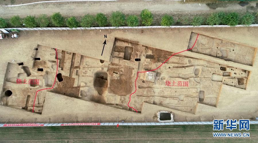 內(nèi)蒙古后城咀龍山時(shí)代石城發(fā)掘區(qū)航拍圖。新華社發(fā)(國家文物局供圖)