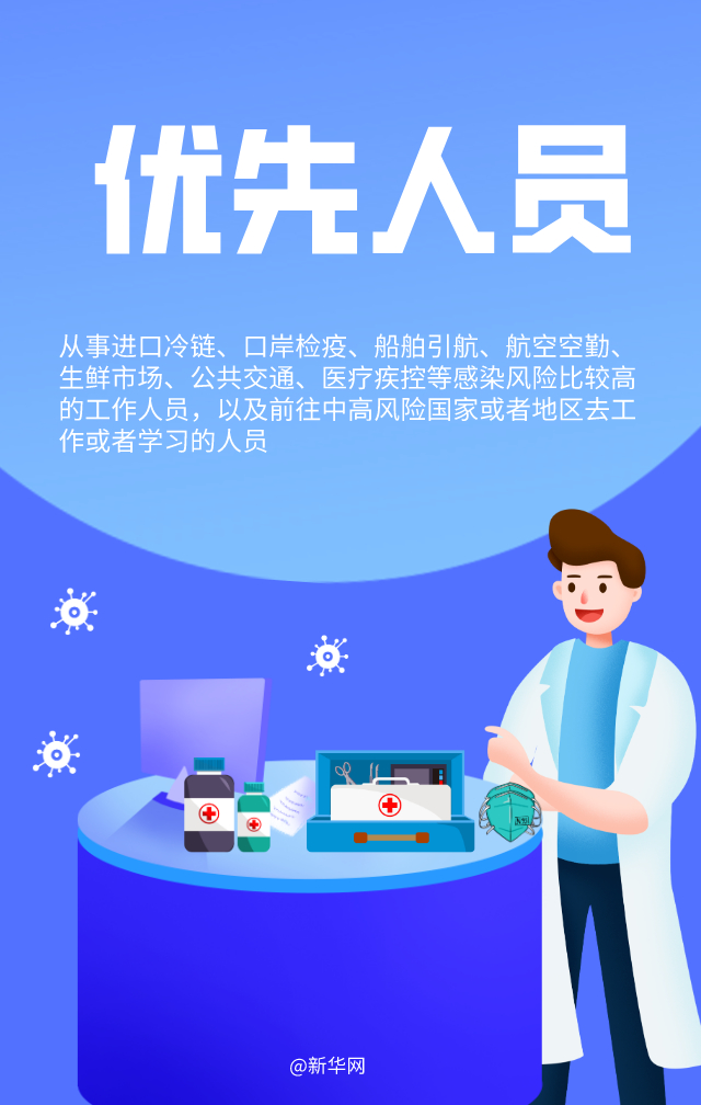 1月1日起,部分地區(qū)重點(diǎn)人群開始接種我國(guó)首批新冠病毒疫苗。哪些人員優(yōu)先接種?接種疫苗需要打幾針?哪些人不適合接種?接種疫苗后是否需要繼續(xù)戴口罩?十個(gè)關(guān)鍵詞帶你了解新冠病毒疫苗接種要點(diǎn)。