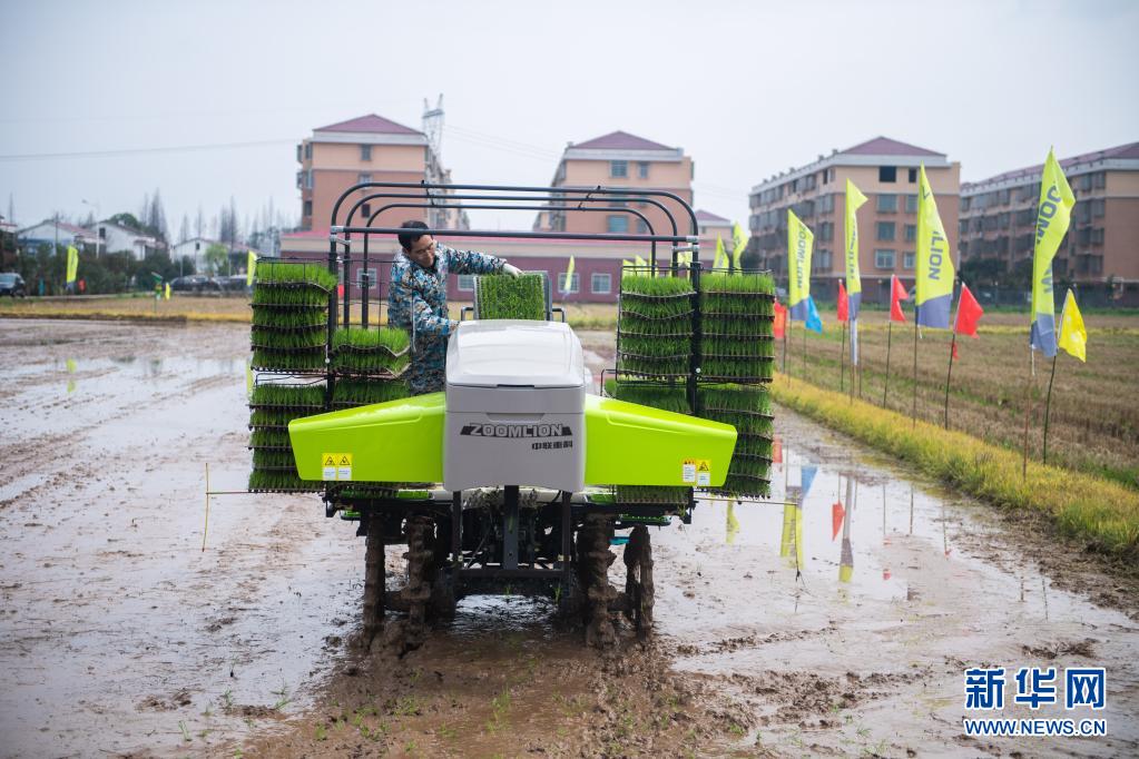 在湖南省益陽市沅江市草尾鎮(zhèn)沅江現(xiàn)代農業(yè)技術研發(fā)基地,工作人員演示插秧機操作(2021年3月2日攝)。新華社記者 陳思汗 攝