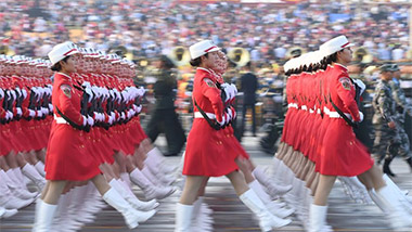 當天上午10時許,雄壯的樂曲聲中,習近平乘坐紅旗牌檢閱車,沿長安街向東,依次檢閱了地面徒步方隊和裝備方隊。