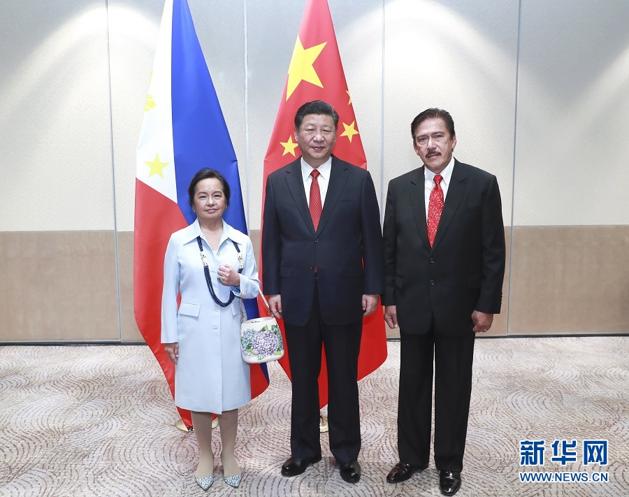 11月21日,國(guó)家主席習(xí)近平在馬尼拉會(huì)見菲律賓眾議長(zhǎng)阿羅約和參議長(zhǎng)索托。 新華社記者 龐興雷 攝