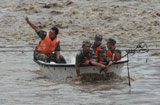 沖鋒舟為舟曲受災(zāi)群眾開辟水上通道