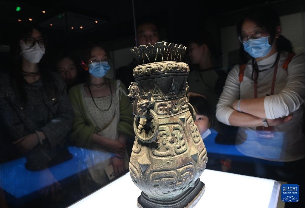 5月11日,游客在陕西历史博物馆参观馆藏西周文物梁其壶。