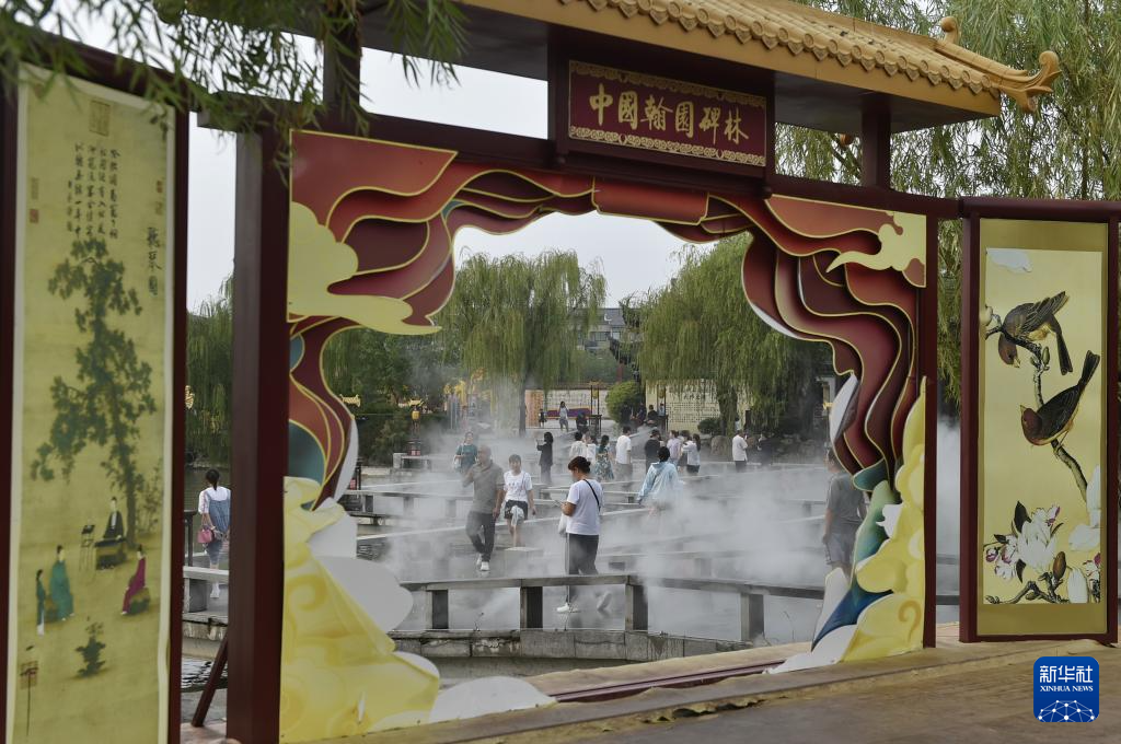 8月19日,游人在中国翰园碑林景区游览。