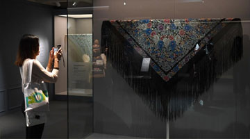 9月15日,观众在展览上拍摄镂空金盖金托盘玉碗。