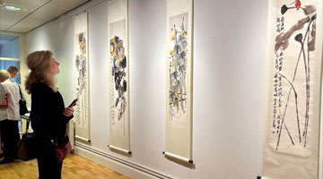 9月15日,观众在展览上拍摄“董其昌临王羲之草书手卷”。
