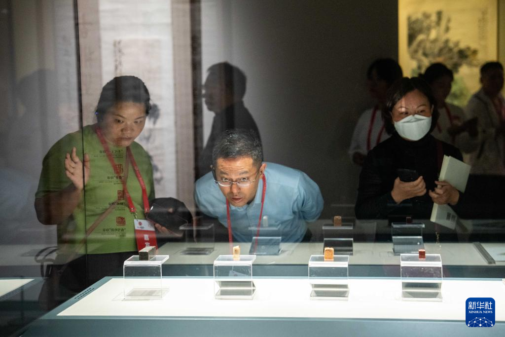 11月5日,在湘潭市博物馆,观众在观看齐白石印章作品。