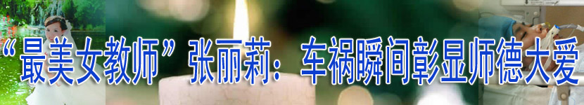車(chē)禍瞬間挽救學(xué)生導(dǎo)致高位截癱的黑龍江省29歲女教師張麗莉,被網(wǎng)友稱(chēng)贊為“最美女教師”。連日來(lái),張麗莉的感人事跡激發(fā)起社會(huì)各界的愛(ài)心傳遞,舍己為人、挺身向前的奉獻(xiàn)精神正成為中國(guó)年輕一代道德價(jià)值體系中的火炬和航標(biāo)。 張麗莉,女,1983年生,大學(xué)本科,黑龍江省佳木斯市第十九中學(xué)的語(yǔ)文教師。2006年,她從大慶師范學(xué)院文學(xué)院03級(jí)本科班畢業(yè)后,分配到佳木斯市第十九中學(xué)任教。她在2012年5月8日的交通事故中,為救學(xué)生而受重傷,致使雙腿截肢。2012年5月15日、5月16日,張麗莉獲“全國(guó)五一勞動(dòng)獎(jiǎng)?wù)隆?、全?guó)三八紅旗手等榮譽(yù)稱(chēng)號(hào)。