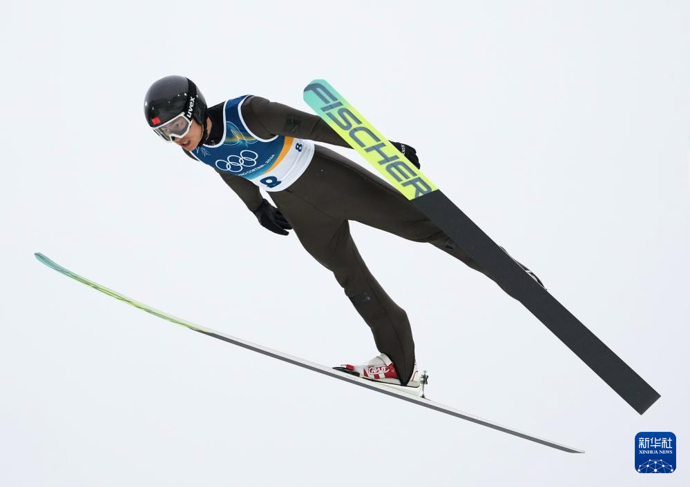 2月11日,中国选手赵子贺在北欧两项个人标准台比赛中。他暂列第34位。