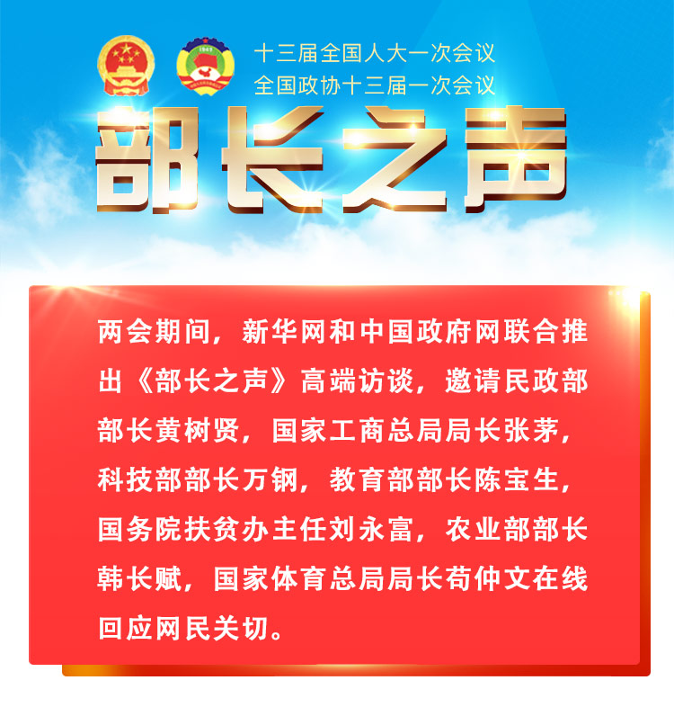 兩會期間,民政部部長黃樹賢做客新華網(wǎng)、中國政府網(wǎng)《部長之聲》,回應(yīng)網(wǎng)民關(guān)切。