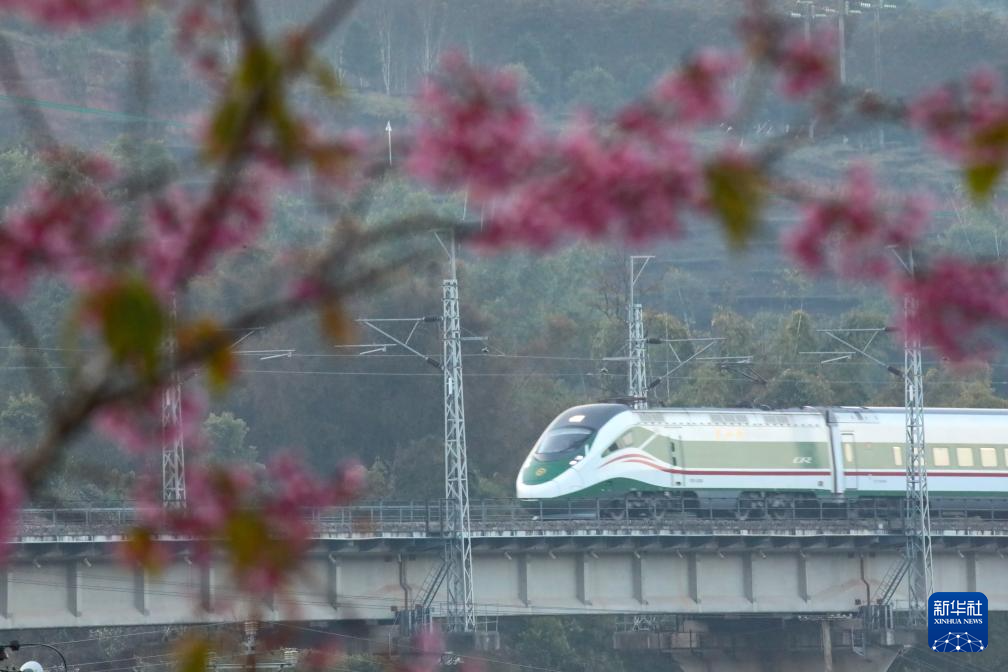 1月25日,动车组列车行驶在云南省景洪市境内的中老铁路上。