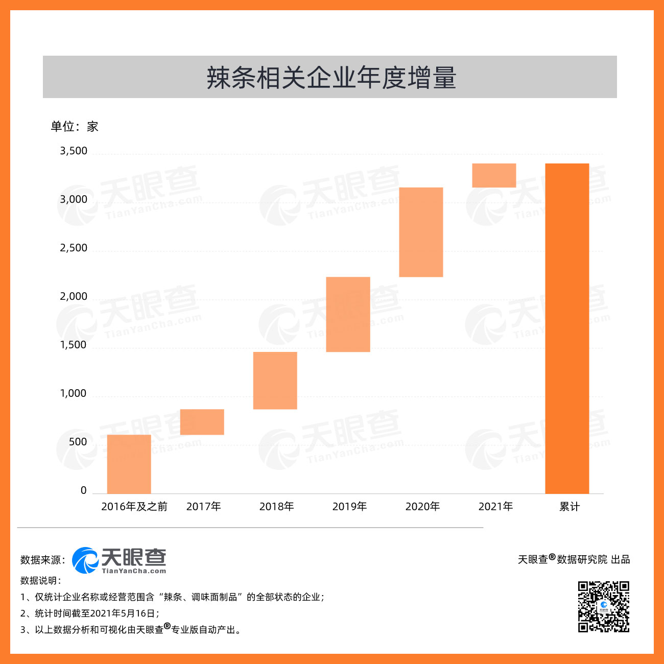 ????? 天眼查數(shù)據(jù)顯示,我國(guó)2020年新增辣條相關(guān)企業(yè)數(shù)量超900家,同比增長(zhǎng)19%。截至5月16日,我國(guó)今年新增辣條相關(guān)企業(yè)數(shù)量已超過(guò)240家。