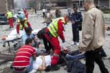 救援人員在爆炸現(xiàn)場(chǎng)忙碌