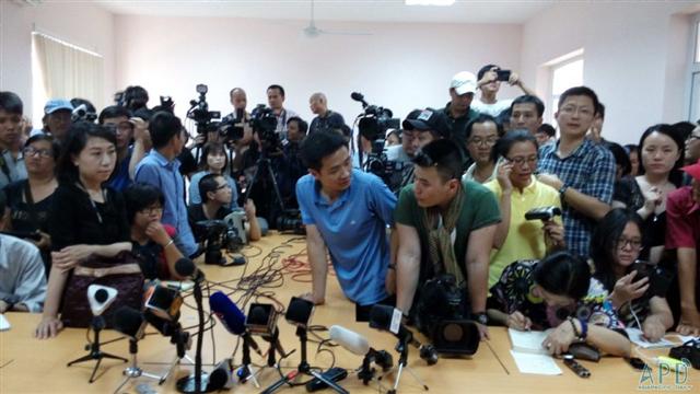 圖為設(shè)在富國島的越南搜救前線指揮辦公室,各國記者在等待新聞發(fā)布會的召開。