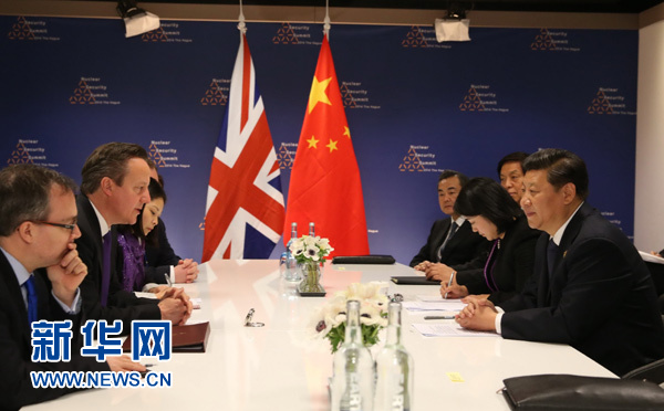 3月25日,國(guó)家主席習(xí)近平在荷蘭會(huì)見英國(guó)首相卡梅倫。新華社記者劉衛(wèi)兵攝