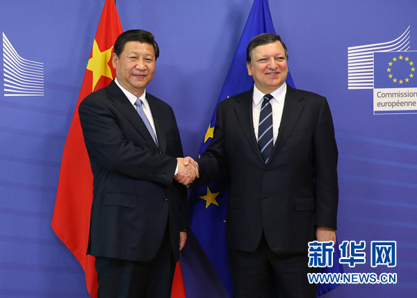 ????3月31日,國(guó)家主席習(xí)近平在比利時(shí)布魯塞爾會(huì)見(jiàn)歐盟委員會(huì)主席巴羅佐。 新華社記者 龐興雷 攝