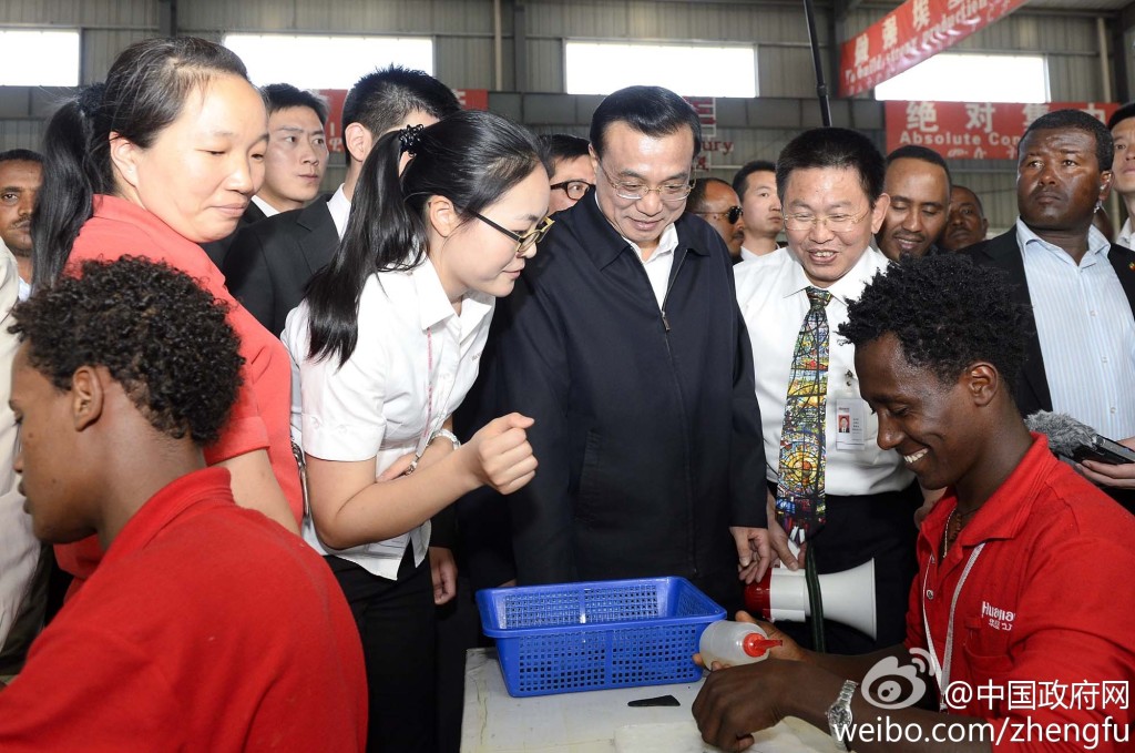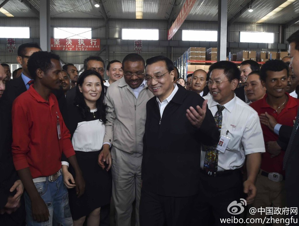 新華網(wǎng)北京5月6日電據(jù)中國政府網(wǎng)微博報道,5日下午,李克強(qiáng)在埃塞總理陪同下參觀東方工業(yè)園。
