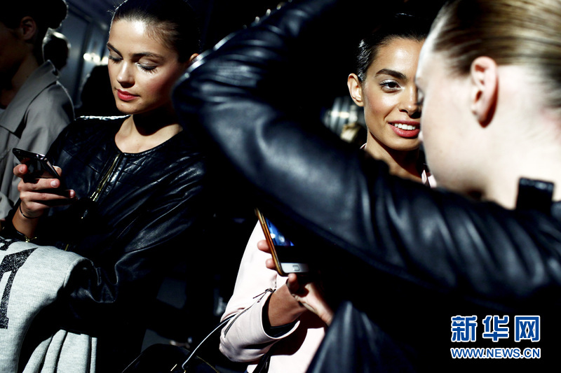 場(chǎng)外正在準(zhǔn)備登臺(tái)展示婚紗的模特。