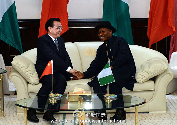 ????新華網(wǎng)北京5月8日電 據(jù)新華社“新國際”微博報道,尼日利亞首都阿布賈安全形勢嚴(yán)峻,人心惶惶……值此時刻,李克強總理如期到訪,未有絲毫猶豫,體現(xiàn)中國領(lǐng)導(dǎo)人對推動中非合作升級的重視和誠意;與喬納森總統(tǒng)會談時,李克強還明確提出,希望尼加強對中國公民的保護(hù),牽掛之情,溢于言表。