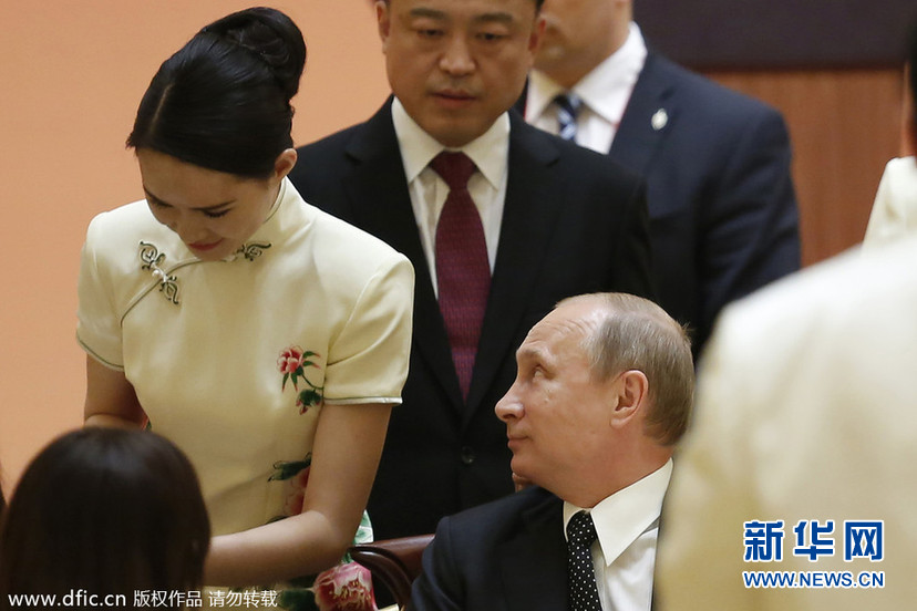 ??? 2014年5月20日,上海舉行亞洲相互協(xié)作與信任措施會(huì)議第四次峰會(huì)。俄羅斯總統(tǒng)弗拉迪米爾-普京出席2014上海亞信峰會(huì)歡迎晚宴,被美女禮儀服務(wù)小姐吸引。(圖片來(lái)源:東方IC)