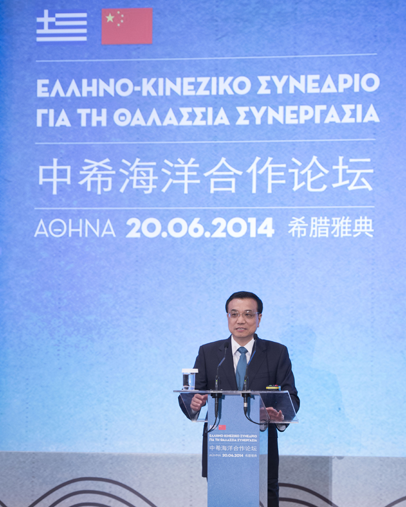 ??? 李克強總理20日在中希海洋合作論壇上說,海洋承載著世界經(jīng)濟發(fā)展與合作共贏的希望。連接各大洲的眾多航線構(gòu)成全球經(jīng)濟一體化大通道,承載著國際貿(mào)易最活躍部分。中國愿同海洋國家一道,積極構(gòu)建海洋合作伙伴關(guān)系,共同建設(shè)海上通道、發(fā)展海洋經(jīng)濟。