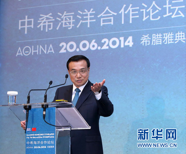 ??? 6月20日,國(guó)務(wù)院總理李克強(qiáng)在雅典與希臘總理薩馬拉斯共同出席中希海洋合作論壇并發(fā)表演講。新華社記者 龐興雷 攝