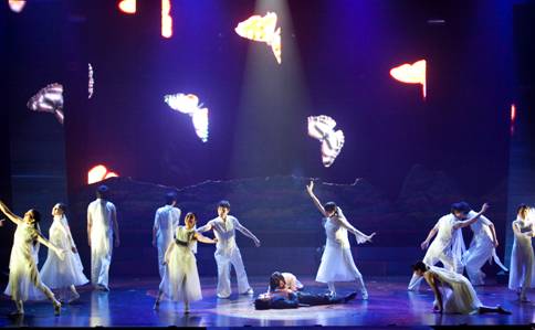 ????此次演出特邀中方以詩經(jīng)經(jīng)典《關(guān)雎》《摽有梅》開場,演員錦衣華服,緩緩起聲,琴音低沉哀鳴高亢交錯(cuò),歌聲余音繞梁之際,韓國音樂劇《蝴蝶博士》華麗登場。伴隨著樂隊(duì)的現(xiàn)場演奏,音樂劇主角石宙明以大段韓語獨(dú)白震撼全場,兩側(cè)屏幕同步顯示中文翻譯。為照顧現(xiàn)場觀眾,韓方演員遇到簡單詞匯則以普通話來詮釋劇情,引發(fā)現(xiàn)場觀眾共鳴。兩個(gè)節(jié)目在動(dòng)與靜,內(nèi)斂與奔放中,碰撞出藝術(shù)火花。中韓兩國藝術(shù)家跨越語言障礙,用不同的藝術(shù)形式表達(dá)了共同的愿望:思考生活,憧憬未來。
