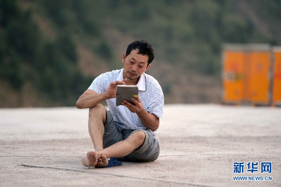????7月5日,烏茲別克斯坦安革連至琶布鐵路隧道項目安革連隧道進(jìn)口西口分部,幾名員工在與家人通電話。(沙達(dá)提 攝)