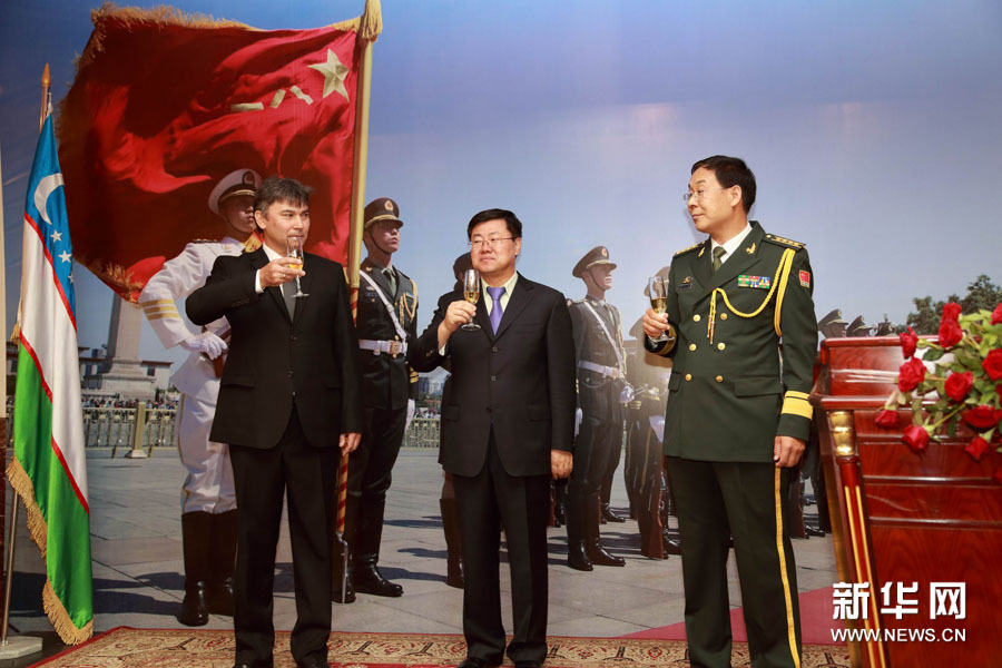 7月31日,中國駐烏茲別克斯坦大使館以孫立杰大使和黃天昌武官名義在塔什干米蘭賓館隆重舉行“八一”軍節(jié)招待會(huì)(新華社發(fā) 記者沙達(dá)提)