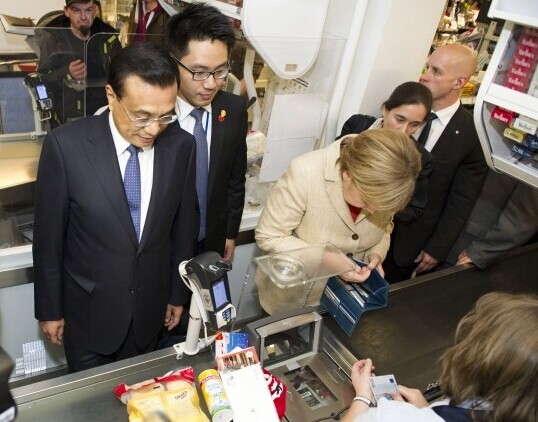 結(jié)賬時(shí),默克爾讓李克強(qiáng)總理先走,自己停下來(lái)付錢,隨后轉(zhuǎn)身與他一起離開(kāi)。兩位總理結(jié)束了短暫的超市之行,到酒店準(zhǔn)備出席第七屆中德經(jīng)濟(jì)技術(shù)合作論壇。
