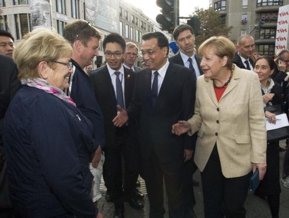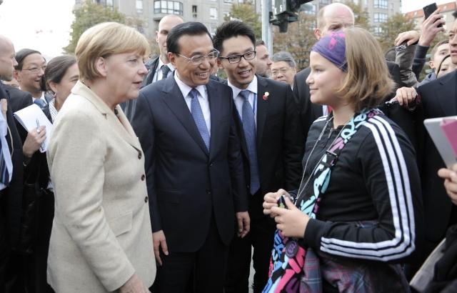 見到兩國(guó)總理到來,路邊不少民眾圍了上來,爭(zhēng)相與他們握手、合影。默克爾還把克強(qiáng)總理介紹給一位7、8歲的德國(guó)小女孩:“這是我的中國(guó)同事?!?/p>