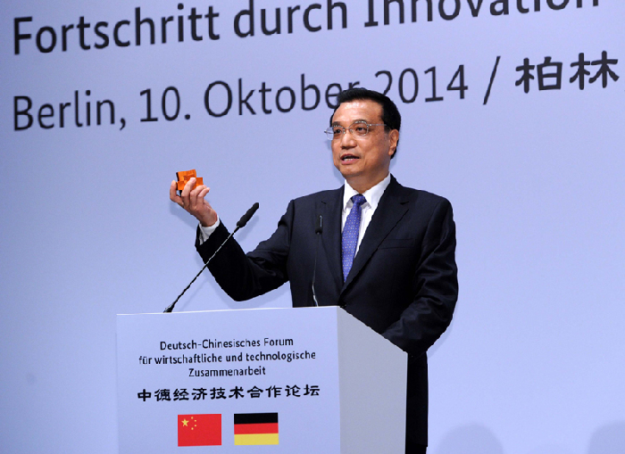 與默克爾共同出席第七屆中德經(jīng)濟(jì)技術(shù)合作論壇時(shí),李克強(qiáng)在致辭最后提起,這次默克爾總理陪他逛了當(dāng)?shù)匾患页校I了兩張明信片送給他的家人,而他也帶來(lái)一份禮物,是中國(guó)天津中德職業(yè)技術(shù)學(xué)院學(xué)生的作品,學(xué)生們希望他在公開的場(chǎng)合把這個(gè)禮物送給默克爾,以表達(dá)對(duì)中德制造業(yè)深度融合的期待。
