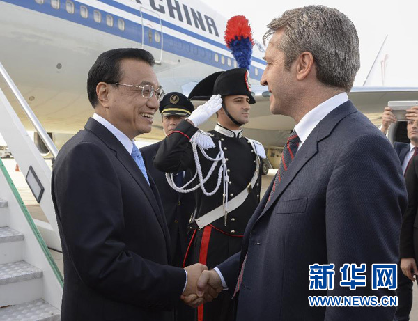 新華網(wǎng)快訊:國務院總理李克強當?shù)貢r間14日下午抵達羅馬,開始對意大利進行正式訪問。