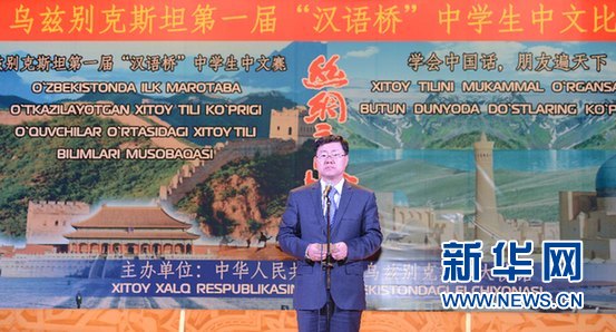 中國(guó)駐烏茲別克斯坦大使館孫立杰大使在出席烏茲別克斯坦第一屆“漢語橋”中學(xué)生中文比賽。