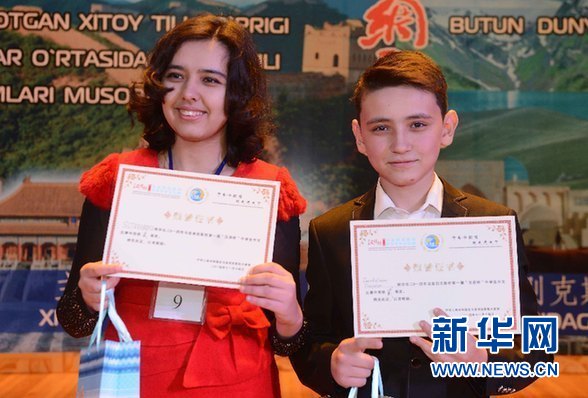 并列獲得烏茲別克斯坦第一屆“漢語(yǔ)橋”中學(xué)生中文比賽第二名的塔什干59中學(xué)的濟(jì)耶杜拉耶夫和東方學(xué)院尤努薩巴特區(qū)附中的希托拉波魯(女)。