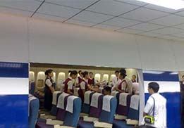 正常人從滑梯撤離,應(yīng)雙臂平舉,輕握拳頭,或雙手交叉抱臂(也可雙手抱頭),從艙內(nèi)跳出落在梯內(nèi)時(shí)手臂的位置不變,雙腿及后腳跟緊貼梯面,收腹彎腰直到滑到梯底,站立跑開(kāi)。抱小孩的旅客要把孩子抱在懷中,坐著滑下飛機(jī)。兒童、老人和孕婦也應(yīng)坐著滑下飛機(jī),但在梯面的姿勢(shì)與正常人相同。傷殘旅客根據(jù)自身的情況坐滑或由援助者協(xié)助坐滑撤離。援助者包括乘坐飛機(jī)的機(jī)組人員、航空公司的雇員、軍人、警察、消防人員、身強(qiáng)力壯的男性旅客。跳滑梯時(shí)必須聽(tīng)從乘務(wù)員的口令一個(gè)接一個(gè)有序往下跳,不可推擠。