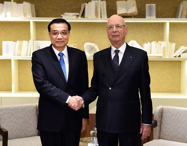 不顧旅途勞頓,克強(qiáng)總理剛下榻酒店就會(huì)見(jiàn)了施瓦布,并應(yīng)邀出席小范圍晚宴。