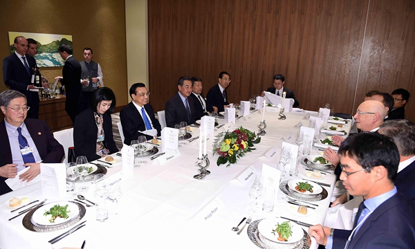 (施瓦布專門(mén)設(shè)宴招待克強(qiáng)總理。攝影:李濤)