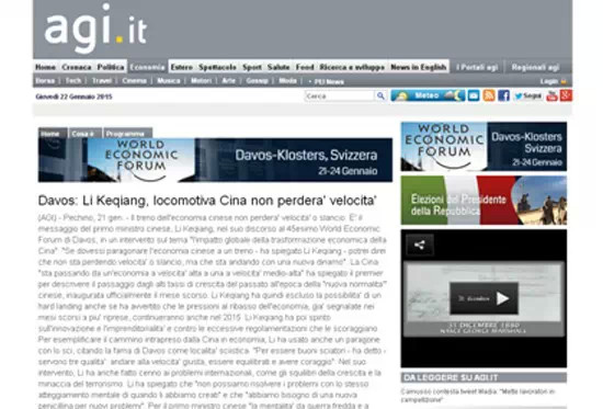 文章援引中國社會科學(xué)院經(jīng)濟研究所專家韓孟對李克強達沃斯之行的解讀稱,自2013年擔(dān)任中國總理以來,李克強被認(rèn)為是中國經(jīng)濟轉(zhuǎn)型的“引領(lǐng)者”。無疑,達沃斯世界經(jīng)濟論壇是一個很好的平臺,這里不但集中了世界經(jīng)濟的精英人物,還給中國提供了一個機會向他們展示自己。盡管中國的經(jīng)濟增長速度略有放緩,但是這樣的經(jīng)濟狀態(tài)更為合理。