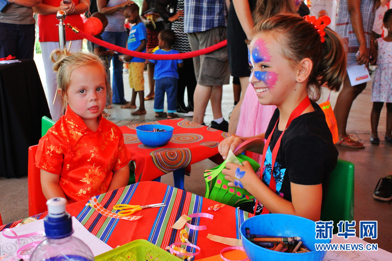 南非小朋友體驗(yàn)中國文化。新華社發(fā)(郭興華攝)