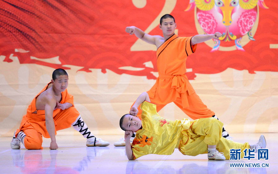 2月4日晚,在烏茲別克斯坦首都塔什干突厥宮,藝術(shù)家在表演中國(guó)武術(shù)和舞蹈。新華網(wǎng)記者 沙達(dá)提 攝