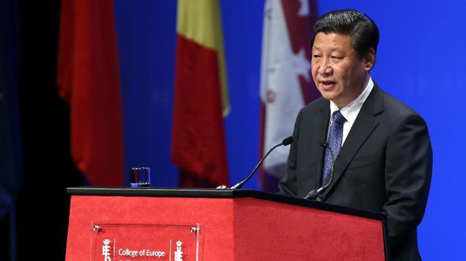 2014年4月1日,國家主席習(xí)近平在比利時布魯日歐洲學(xué)院發(fā)表重要演講。新華社記者龐興雷攝