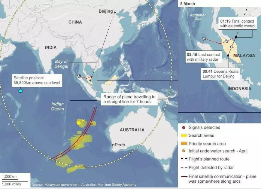 許多人還記得,MH370失去聯(lián)系后,根據(jù)飛機(jī)曾與衛(wèi)星聯(lián)系的信號(hào)在印度洋東部劃出了一個(gè)12萬平方公里的搜尋區(qū),那為什么現(xiàn)在殘骸又出現(xiàn)在了數(shù)千公里外、印度洋西南部的留尼汪島?