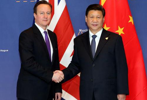 資料圖片:2014年3月25日,中國國家主席習近平在荷蘭會見英國首相卡梅倫。